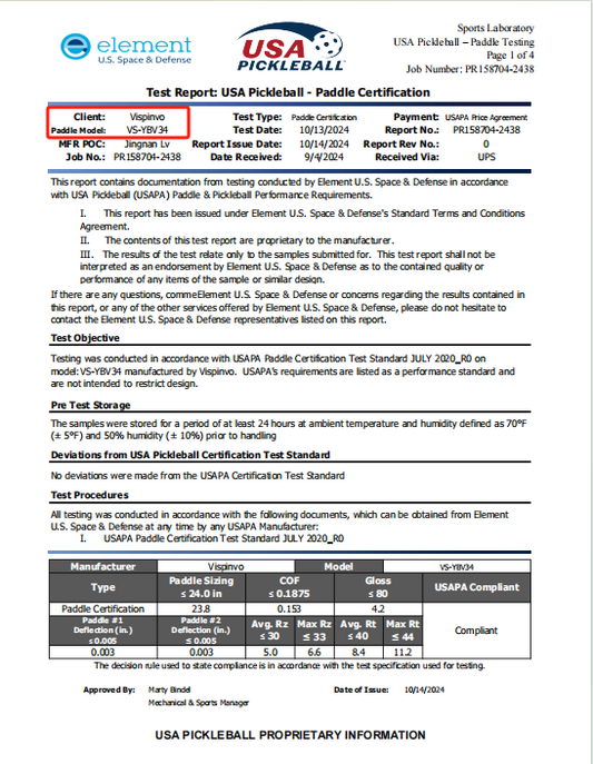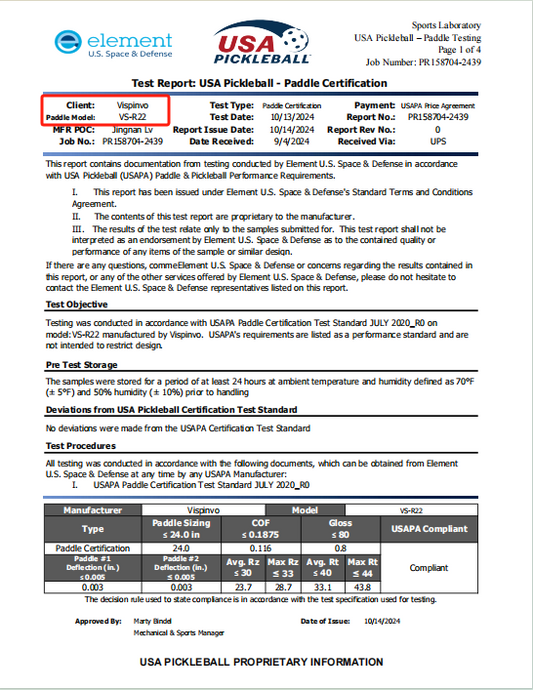 Vispinvo VS-R16 high level USAPA authentication Carbon Fiber pickleball paddle for professional players