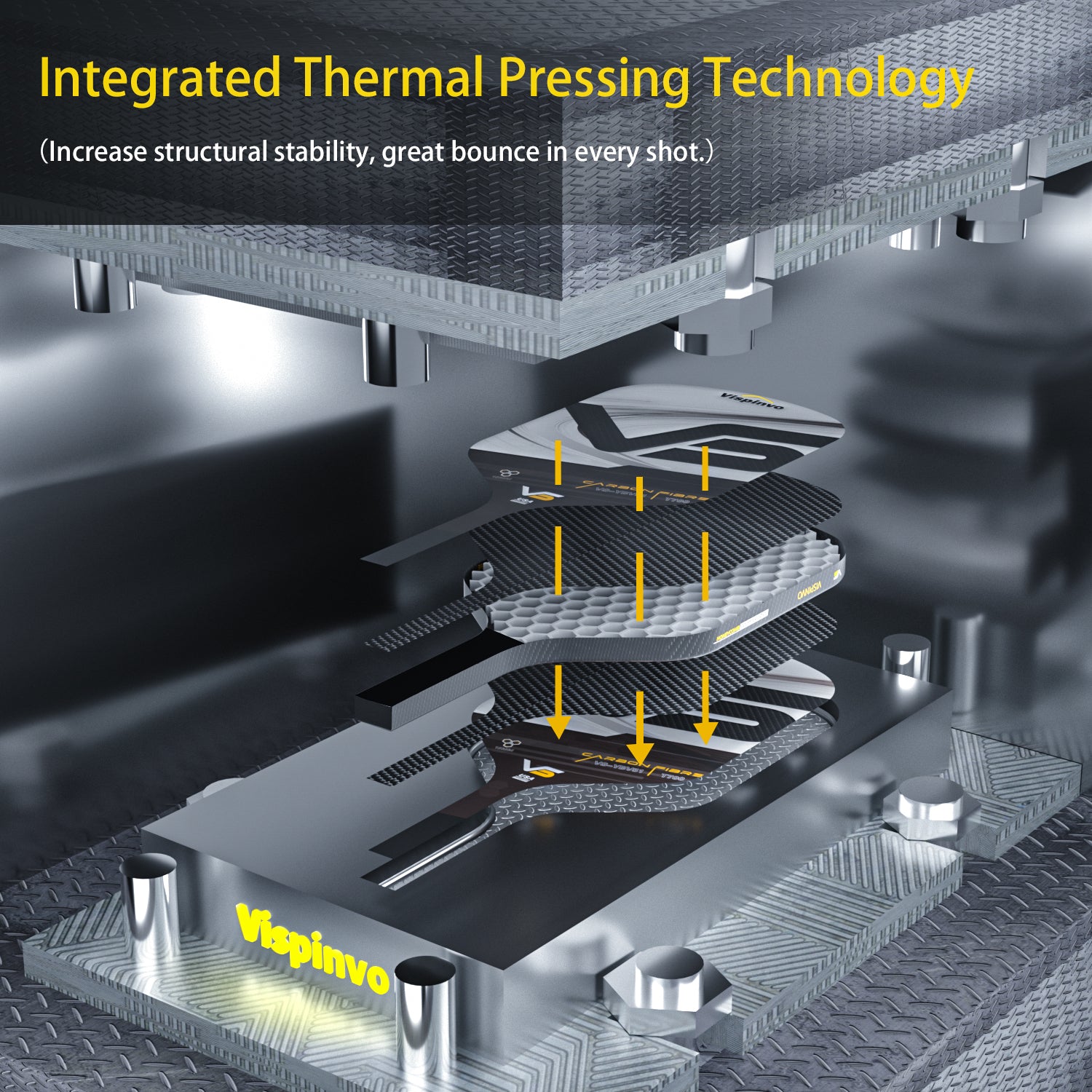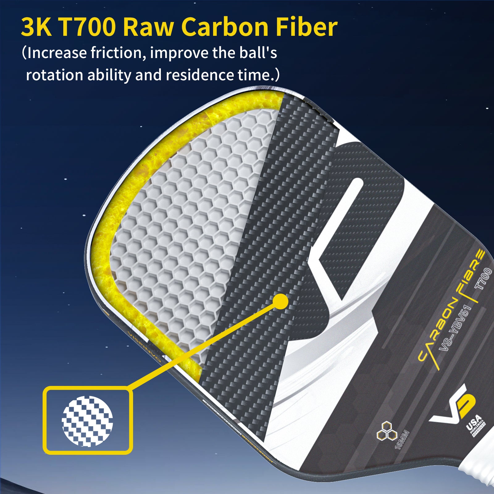 USAPA Approved High Quality Paddle, VISPINVO VS-YBV51 16MM Edgeless, 3K T700 Thermoformed Raw Carbon Fiber Pickleball Paddle, Foam Injected Edges for Expanded Sweet Spot